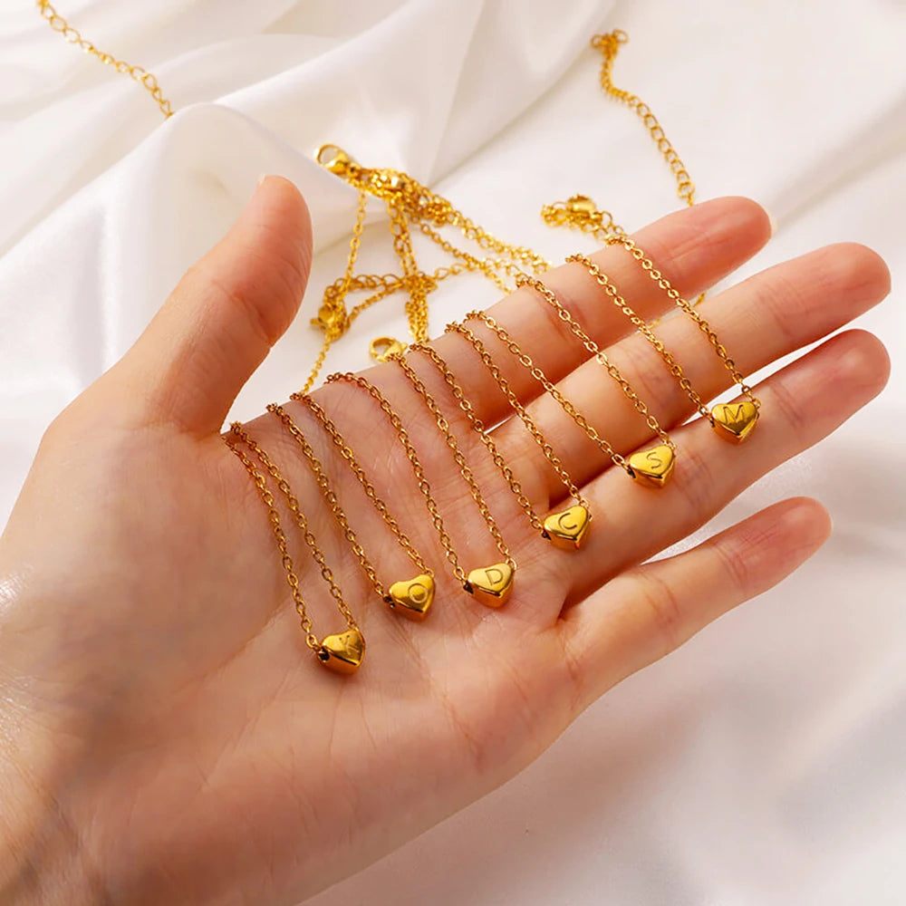 Initial Hart Ketting voor Dames – Verguld Roestvrijstaal – A-Z Letter Gravure
