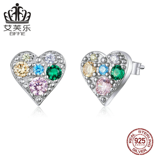 Kinder Oorbellen – 925 Zilver – Hartvorm met Kleurrijke Zirkoon