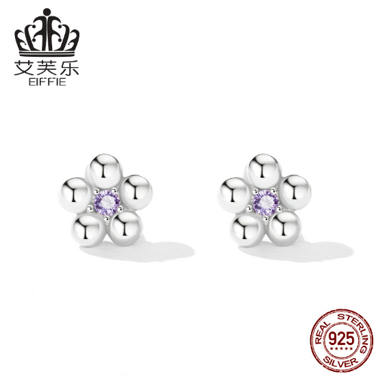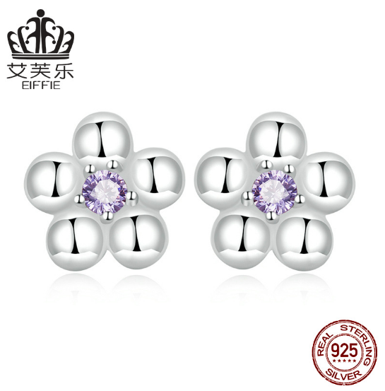Sterling Silver Kinder Bloem Oorbellen met Paarse Zirkoon